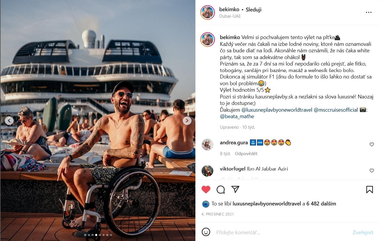 Na jeseň 2021 Naša cestovná kancelária ONEWORLD Travel s.r.o. sponzorovala 7 nočnú plavbu influencera a vozíčkára Bekima na lodi MSC Virtuosa z Dubaja. Nielen, že celú plavbu vtipne glosoval, ale podelil sa aj o pekné fotky na sociálnych sieťach. Najviac fascinujúca bola jeho jazda na tobogáne!