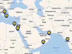Niektoré prístavy, v ktorých plavby začínajú: Mahe (Seychely), Kapské mesto (Juhoafrická republika), Piraeus/Atény (Grécko), Muscat (Omán).