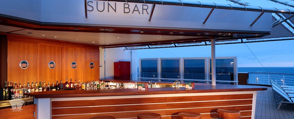 ![]() | Pinnacle Suite PS 126 m² vrátane verandy Veranda s teakovou podlahou 3. lôžko; veľká obývacia časť; 2 umývadlá, vírivá vaňa a extra sprcha; vlastný stereo systém; mikrovlnka a mraznička; veranda s vírivou vaňou. | ![]() |
