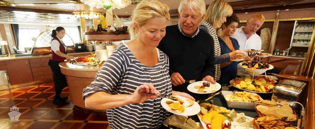 Stravovanie: Na trajektových lodiach spoločnosti sa stolovanie sa odohráva v jednej reštaurácii. Raňajky a obedy sú otvorené a podávané formou bufetu s dobrým výberom chutných nórskych a medzinárodných jedál. Večere sú v stanovených časoch s vyhradenými miestami, obsahujú tri chody. Špeciálne požiadavky ohľadom stravovania je potrebné nahlásiť vopred. Kaviareň otvorená 24 hodín denne (tu sa platí za každú konzumáciu podľa jedálnička) je najčastejšie využívaná cestujúcimi, ktorí cestujú len na krátkych úsekoch.