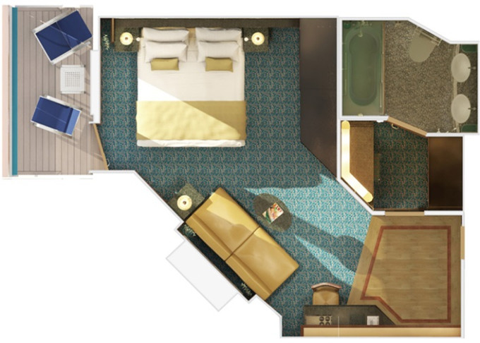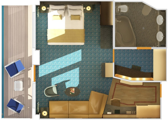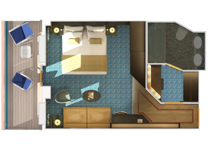 | OS - Ocean Suite od 25 m² + balkón od 6 m². 7. paluba stred, vpredu. Max 4 osoby. Výhody Suite. | 2 774 € 1 387 € za osobu | ||