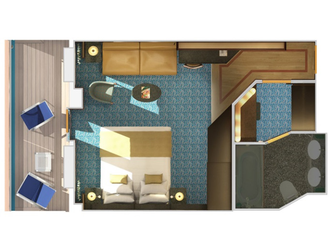 | 8S - Kajuta s balkónom Cloud 9 Spa 17 m² + balkón 3 m². 12. paluba vpredu. Voľný vstup do Spa a balíček Cloud 9 Spa. | 1 308 € 654 € za osobu |