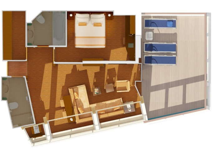 | GS - Grand Suite 32 m² + balkón 8 m². 7. paluba stred. Výhody Suite. | 3 190 € 1 595 € za osobu | ||
