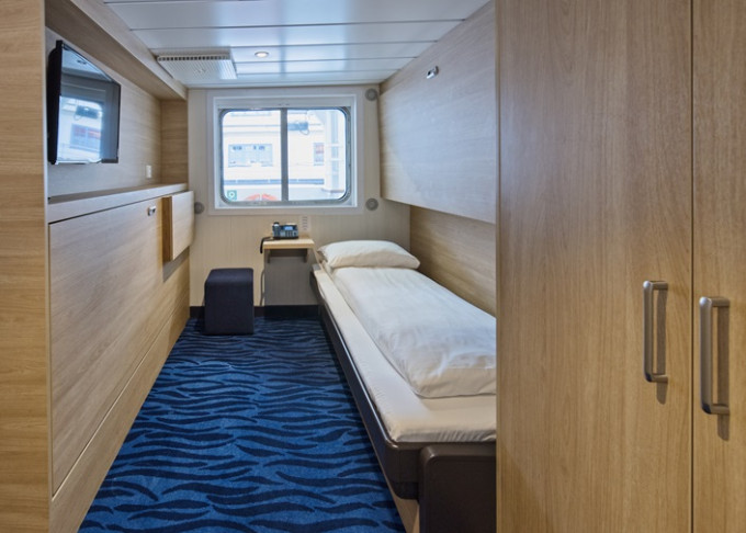 O3 - Vonkajšia kajuta Polar 13-14 m². Neotvárateľné okno. Tv, sejf, varná kanvica. 4. paluba. Max 3 osoby. 11 074 € 5 537 € za osobu