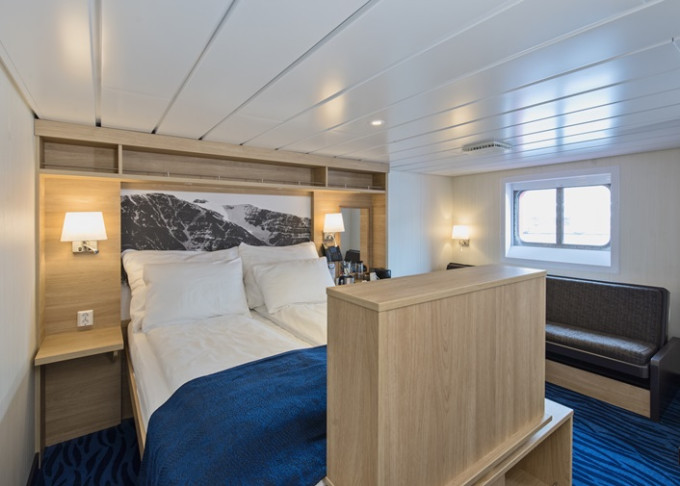 Q2 - Expedition Mini Suite 16-17 m². Neotvárateľné okno. TV, sejf, minibar, kávovar, varná kanvica. 4. paluba. Max 2 osoby. Výhody Suite. 12 874 € 6 437 € za osobu