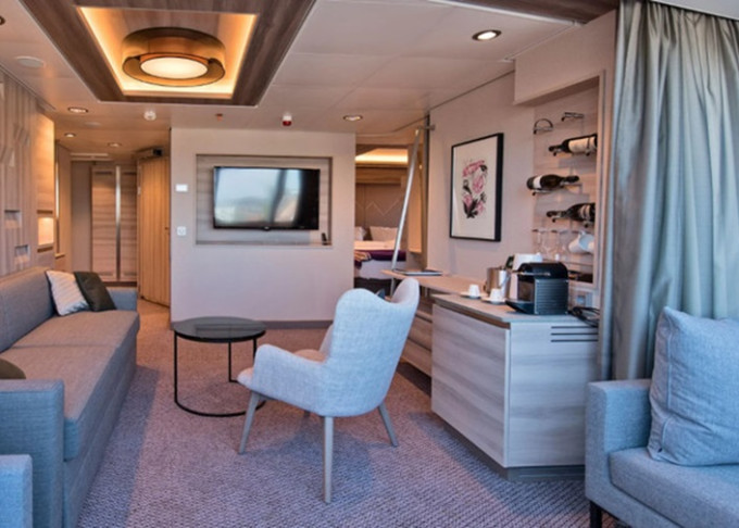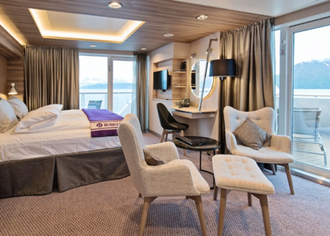 | MD - Expedition Large Suite s balkónom ♿ 35 m². Balkón. TV, minibar, varná kanvica, kávovar. Bezbariérová kajuta♿ 7. paluba vpredu. Max 4 osoby. Výhody Suite. | 27 326 € 13 663 € za osobu | ||