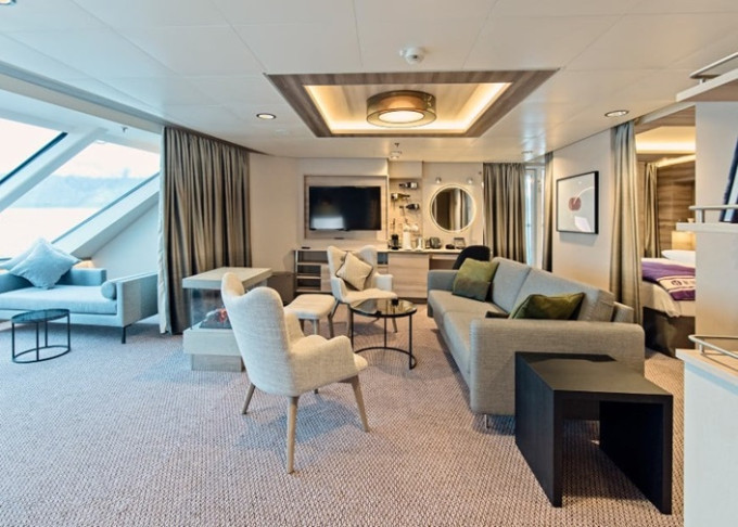 | ME - Expedition Suite s balkónom 20-28 m². Balkón. TV, minibar, varná kanvica, kávovar. 8,9. paluba. Max 4 osoby. Výhody Suite. | 24 106 € 12 053 € za osobu | ||