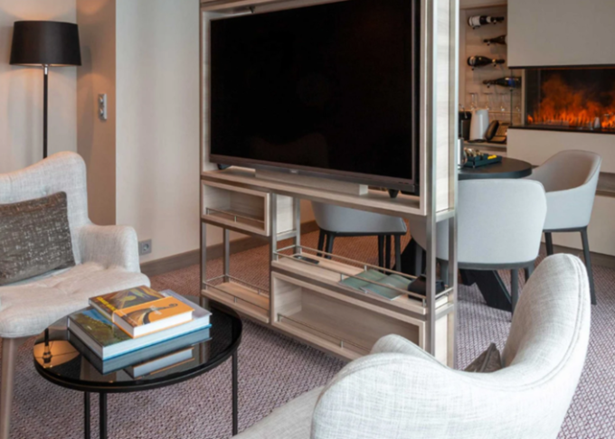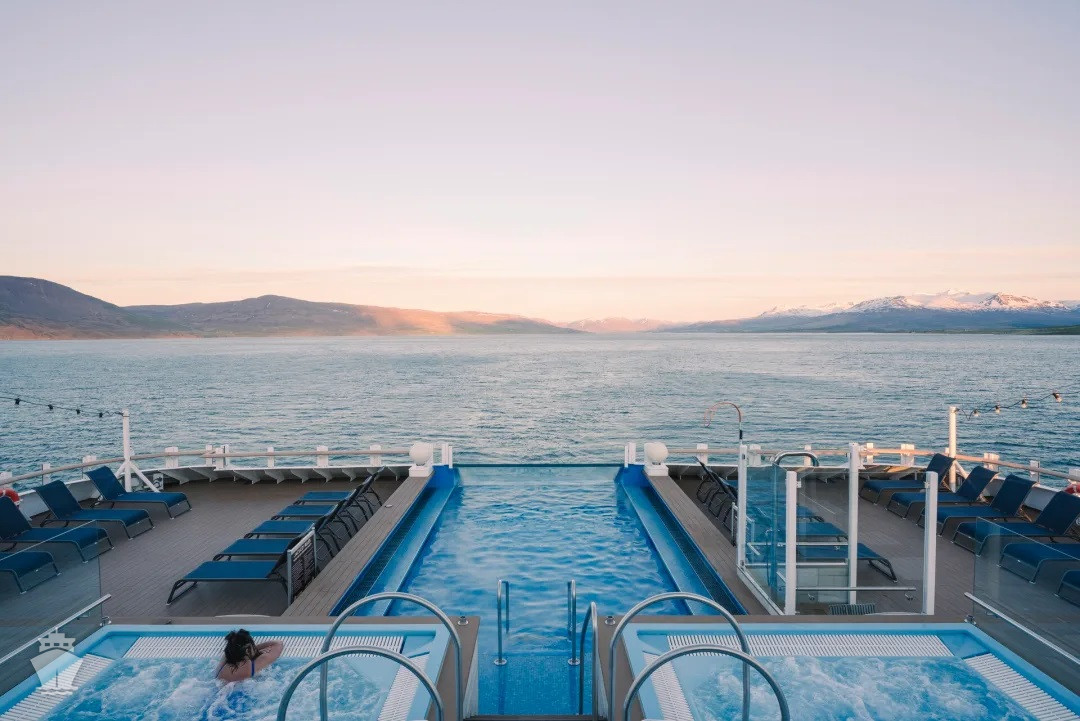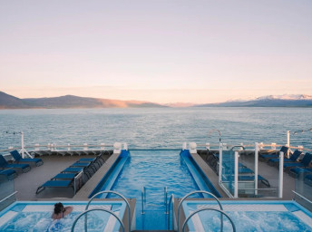 - Aft-facing apartmány suites v zadnej časti lode s vlastnými virivkami na terase