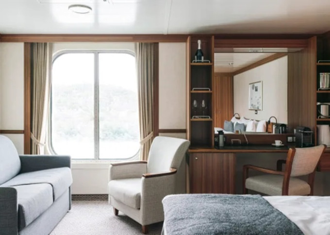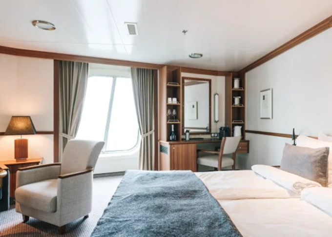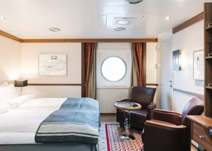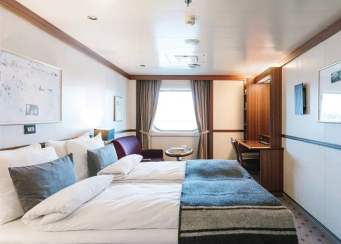 F4 - Vonkajšia kajuta Arctic Superior 22-23 m². Neotvárateľné okno / môže byť obmedzený výhľad.Tv, varná kanvica. Upper paluba. Max 4 osoby. 26 234 € 13 117 € za osobu