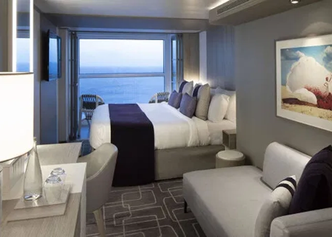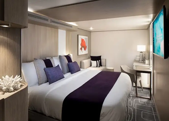 • Kajuty sú umiestnené v blízkosti lodného Spa. K ich vybaveniu patrí posilnený systém vzdušnej filtrácie, posteľ Queen-Size (v kategóriách Edge King-Size), veľké zasúvacie sklenené dvere, exkluzívne posteľné prádlo eXhale®, veľkorysé skladovacie priestory.