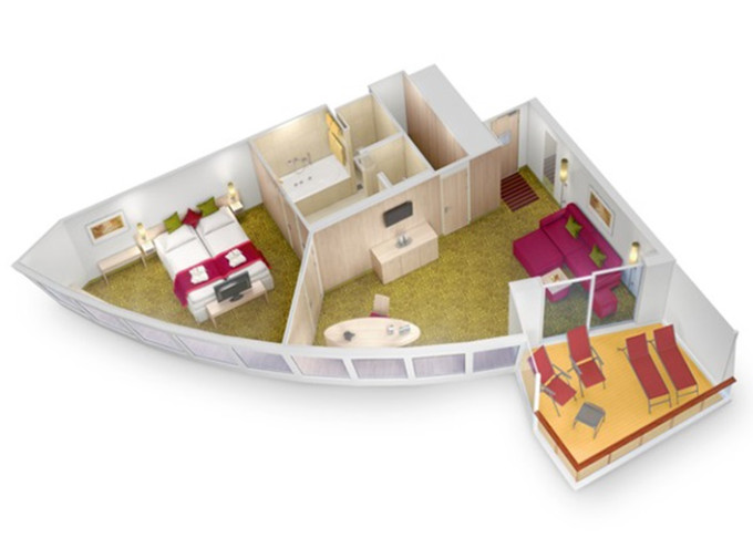 | SX - Suite Panorama Deluxe PREMIUM 54 m² / balkón 12 m². Vírivka. 12. paluba. Max 4 osoby. Cenový model Premium + výhody Suite. | 13 100 € 6 550 € za osobu |