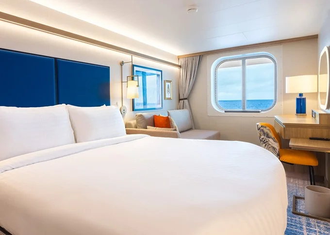 | L5 - Kajuta s oknom Panoramic Ocean View 24 m². Celoplošné neotvárateľné okno, výhľad na more. 14. paluba vpredu. Max 3 osoby. | 4 164 € 1 041 € za osobu | ||