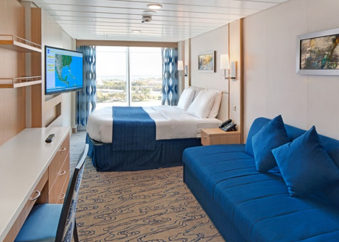 2T - Vnútorná kajuta s oknom / Promenade View 18 m². Neotvárateľné okno (výhľad na Royal Promenade). 7. paluba stred, vzadu. Max 5 osôb. 4 124 € 1 031 € za osobu