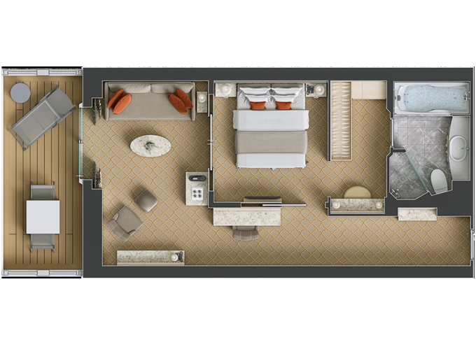 SV - Superior Veranda Suite 30 m² + balkón 6 m². 7,8,9. paluba. Max 3 osoby. 19 800 € 9 900 € za osobu