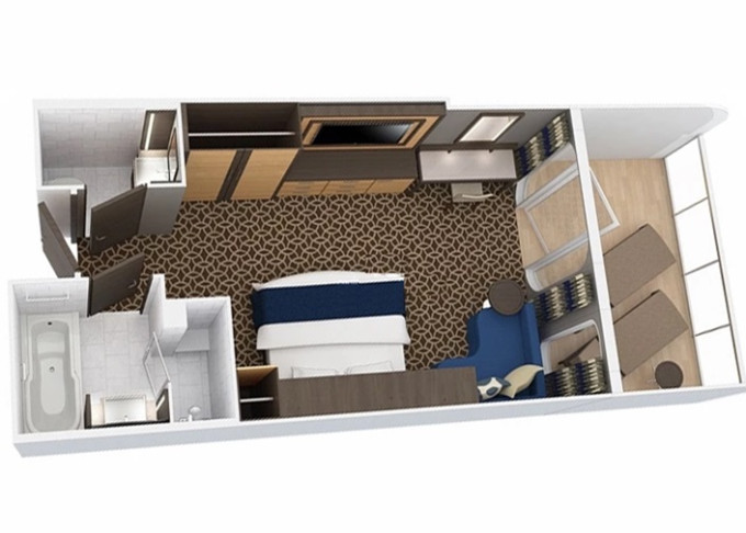 3D - Kajuta s balkónom 18 m² + balkón 5 m². 6. až 13. paluba. Max 2-4 osoby. 5 356 € 1 339 € za osobu