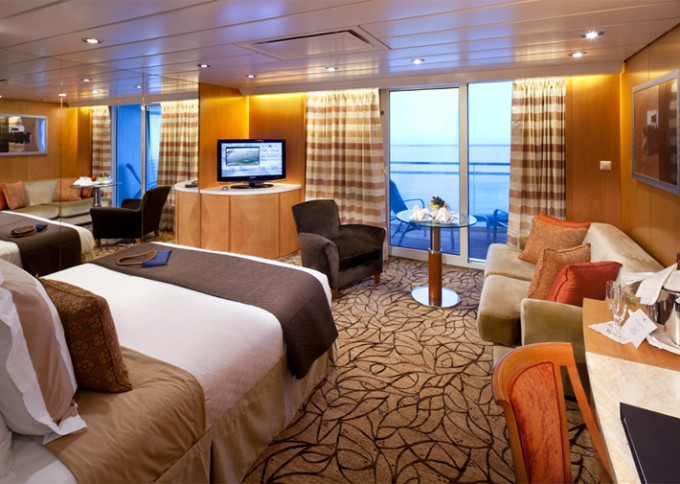 • Kajuty sú umiestnené v blízkosti lodného Spa. K ich vybaveniu patrí posilnený systém vzdušnej filtrácie, posteľ Queen-Size (v kategóriách Edge King-Size), veľké zasúvacie sklenené dvere, exkluzívne posteľné prádlo eXhale®, veľkorysé skladovacie priestory.