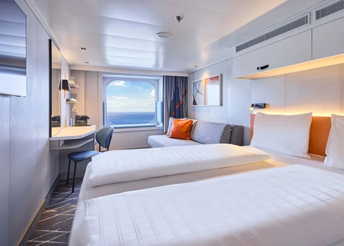 | AUCO - Kajuta s oknom kat. C 17 m². Neotvárateľné okno. 3. paluba. Max 4 osoby. | 2 498 € 1 249 € za osobu | ||