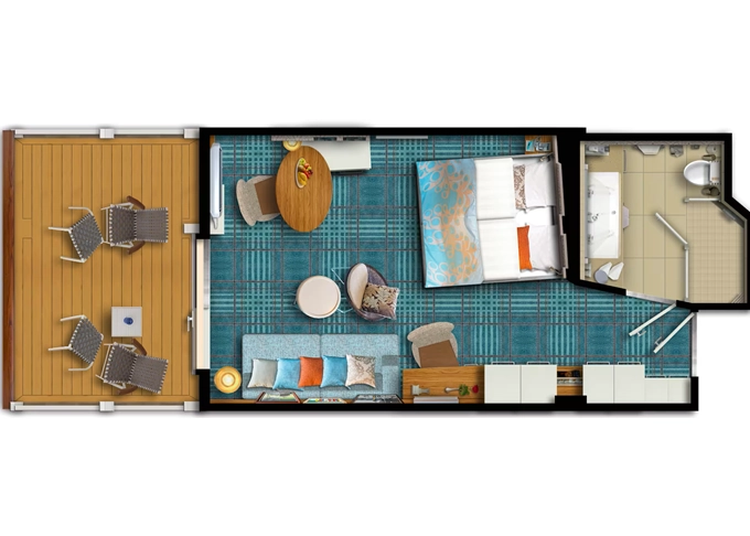 | BABO - Kajuta s balkónom kat. B 17 m² + balkón 5 m². 9. paluba. Max 4 osoby. | 3 458 € 1 729 € za osobu | ||