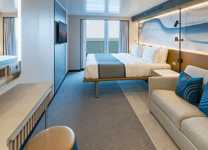 | MB - Club Suite Forward-Facing s balkónom 22 - 25 m² / balkón 7 m². 9. až 13. paluba - vpredu. Max 2 osoby. Výhody Club. | 4 536 € 2 268 € za osobu | ||