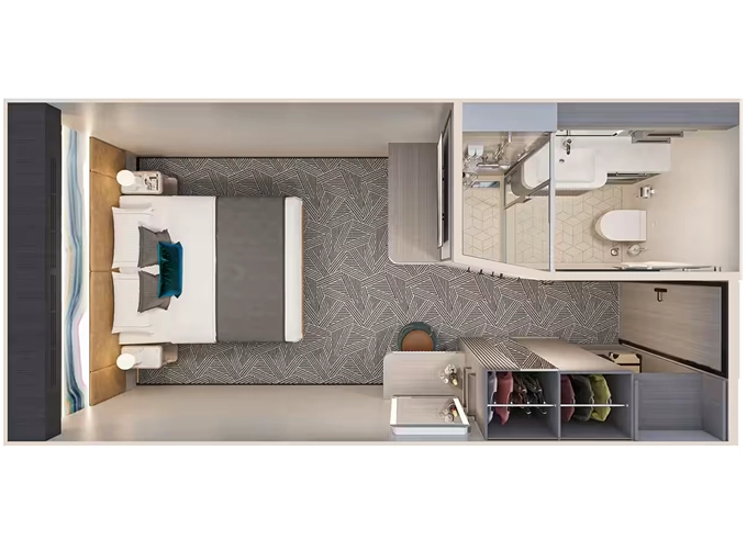 | IA - Vnútorná kajuta 15 m². 12- 16. paluba. Max 2 osoby. | 2 416 € 1 208 € za osobu | ||
